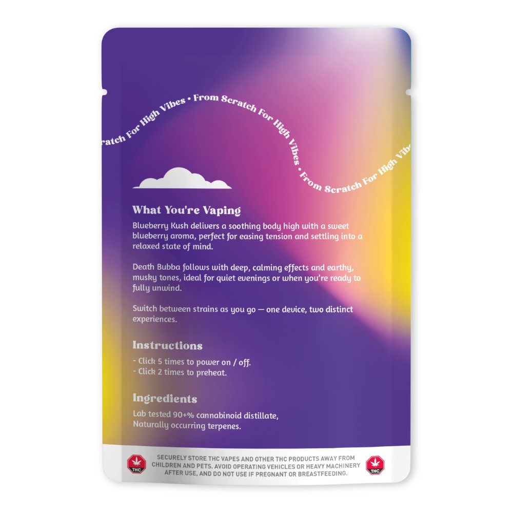 The Dreamers 6G Disposable Vape Pen blends sweet, fruity Blueberry Kush with the earthy, deeply relaxing Death Bubba in a dual-chamber design. With 6g of premium distillate, ceramic heating, and customizable modes, this heavy-indica vape offers rich flavour and intense full-body relaxation ideal for unwinding, relieving stress, or easing into restful sleep.