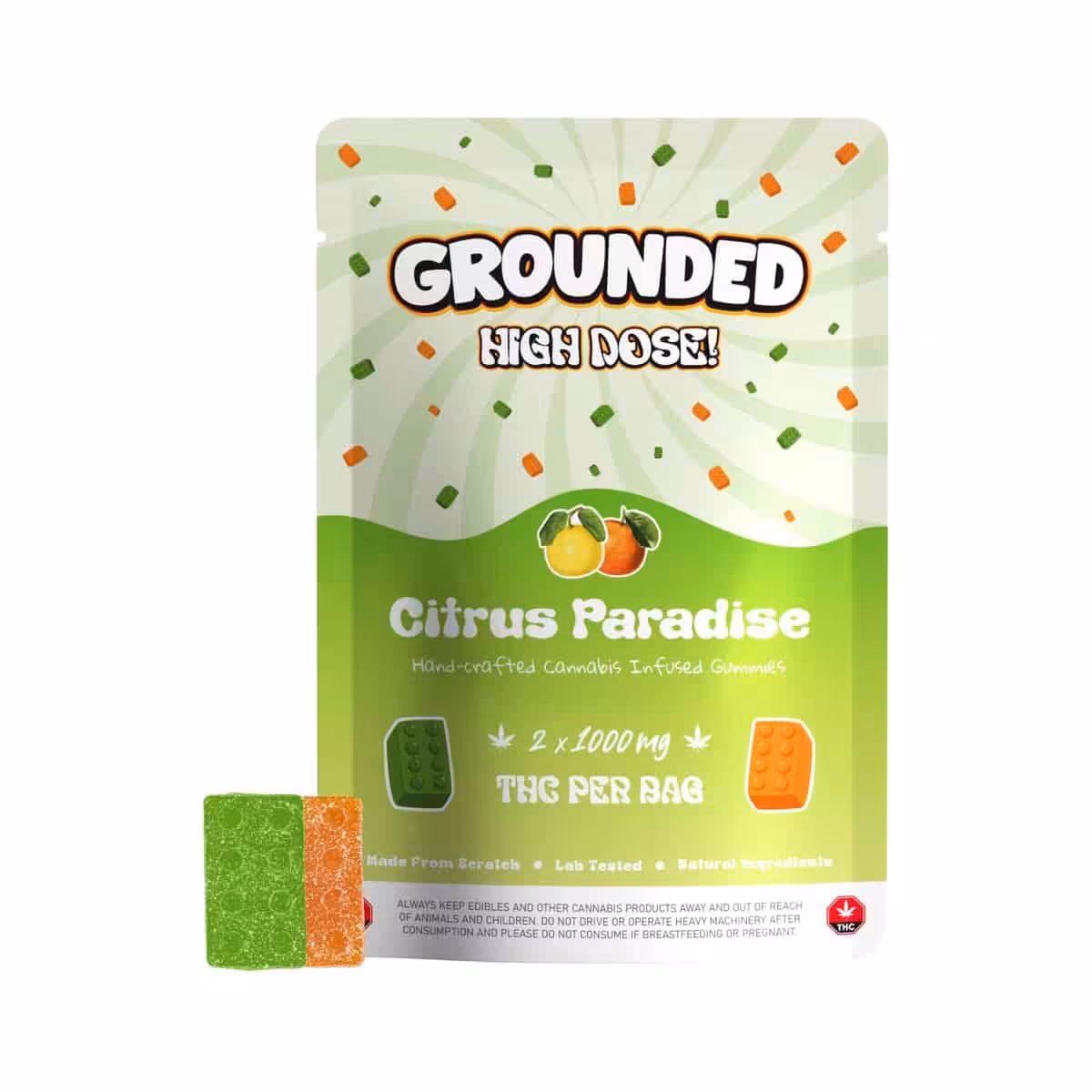 Grounded High Dose Bricks – Citrus Paradise delivers a bold citrus medley packed into ultra-potent THC gummies. Each 1000mg brick bursts with bright orange and exotic yuzu-calamansi flavour, offering an energizing taste and intensely long-lasting effects. Perfect for experienced consumers seeking a powerful and refreshing edible experience.